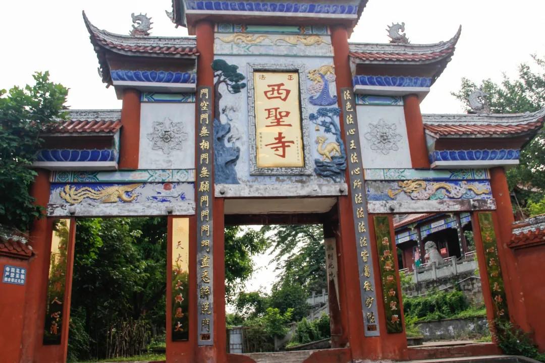 西圣寺始建于明朝万历三十五年(1607年),清嘉庆六年(1801年)扩建。每逢晴日,一抹朝霞从雷音铺山垭冉冉升起,犹如一团火球徐徐上升,光耀夺目。正午,赤色如丹,霞光万道,红霞漫天。西圣朝霞为原达城八景之一。