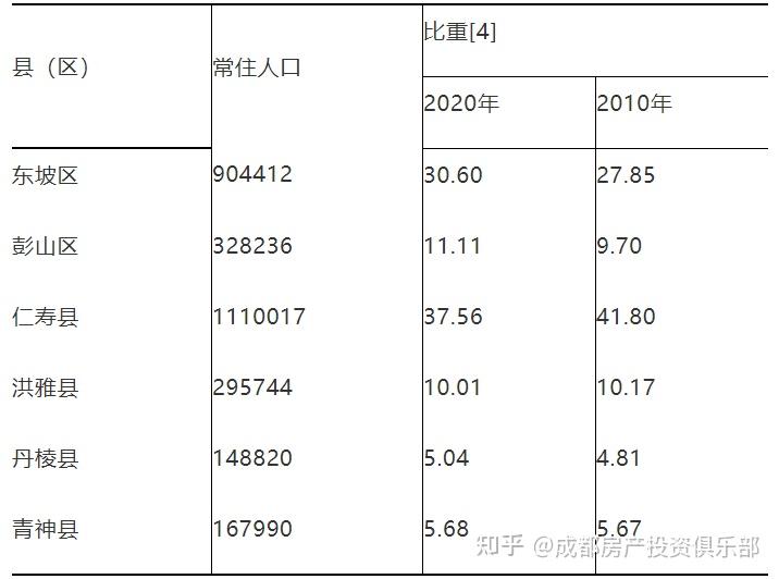其中常住人口居前三位的县(区)依次是仁寿县、东坡区、彭山区,合计占全市常住人口比重为79.27%。