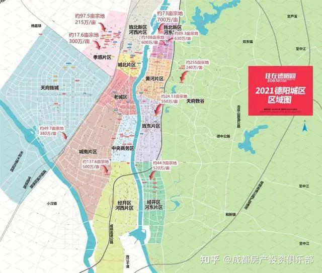 据统计显示,2021年德阳城区成交了10宗住宅类用地,共计约896.5亩 ,成交楼面地价1466元/㎡~4200元/㎡不等。天府数谷、天府旌城等城市新区是供地主力,高价地块主要集中在城北,拿地主体以平台公司为主。